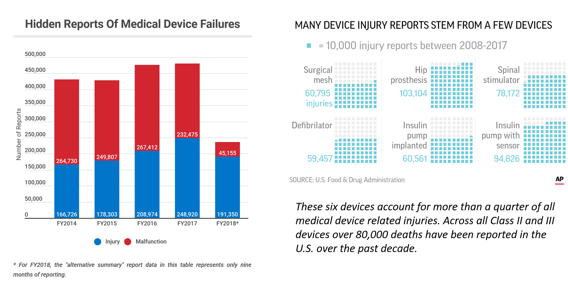 The FDA keeps track of reported device failings in its Manufacturer And User facility Device Experience (MAUDE) database. The database shows a steady increase in the number of reported malfunctions, injuries and deaths over the past decade and a half. One cause of this increase is a growth in the proportion of Class III devices compared to other devices. There has been a great deal of innovation in these more dangerous and complicated devices following recent advancements in cyber-technology, so more and more of them are being created and sent to the FDA for approval. This has raised concerns that the FDA isn’t taking the proper time and care to properly test and approve these high-risk devices. The overall number of devices submitted for FDA approval has increased significantly as well as more and more companies enter into the industry. Right now, an average of 12 new devices are approved by the agency every day.