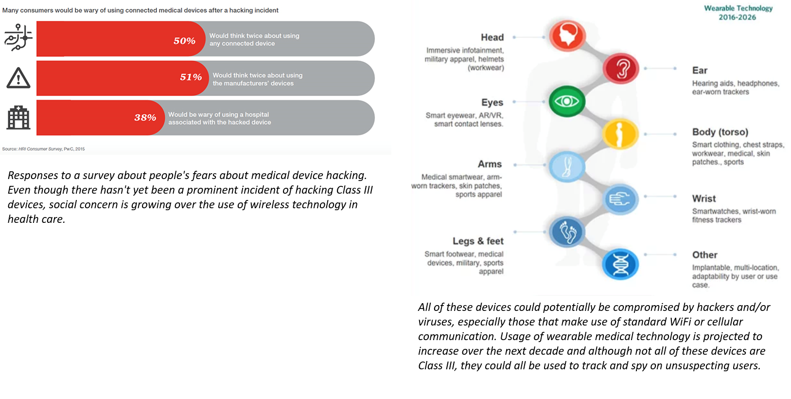 Since Class III devices are often the most complicated and and are the source of the most controversy, we will focus on those primarily. These devices are the most stringently regulated of the three classifications but more and more we see that the strict FDA requirements are not enough to prevent harm being done by manufacturer negligence or malicious hacking.